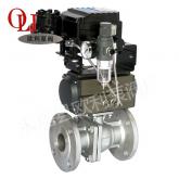 气动高平台球阀(带手动装置)和法兰闸阀是同属一个类型的阀门,区别在它的关闭件是个球体,球体绕阀体中心线作旋转来达到开启、关闭的一种阀门。 球阀在管路中主要用来做切断、分配和改变介质的流动方向。二片式球阀,三片式球阀,是近年来被广泛采用的一种新型阀门